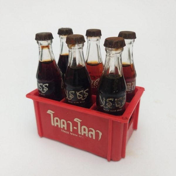 • GARRAFAS VIDRO COCA COLA COLEÇÃO ORIGINAL COM 6 MÍNIS E ENGRADADO. VÁRIOS PAÍSES.  ANOS 80. MEDIDA DO ENGRADADO 8,50 X 3,50 CM. MEDIDA DA GARRAFINHA 7,50 X 2 CM.