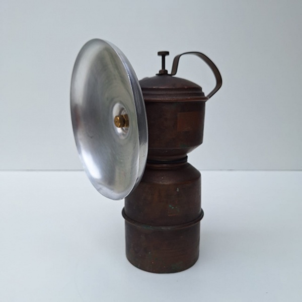 • Lindo LAMPIÃO/ LANTERNA a carbureto antigo, provavelmente feito de cobre. Peça no estado da foto, sem testes de funcionamento.