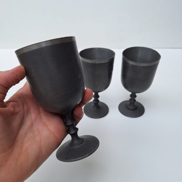 • Três taças lindas em estanho. Possivelmente da marca JOHN SOMERS. Peça no estado das fotos.