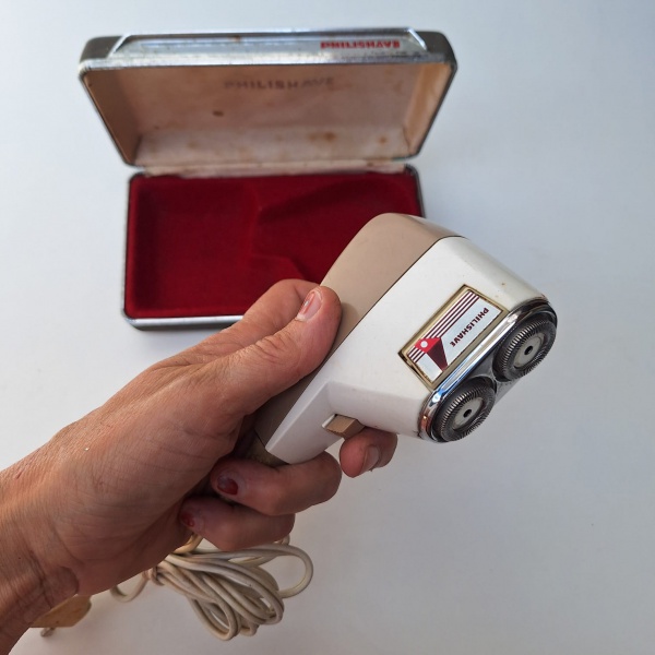 • Super vintage. BARBEADOR elétrico PHILIPS PHILISHAVE, anos 70. Acompanha case original. Peça no estado das fotos, sem testes de funcionamento.