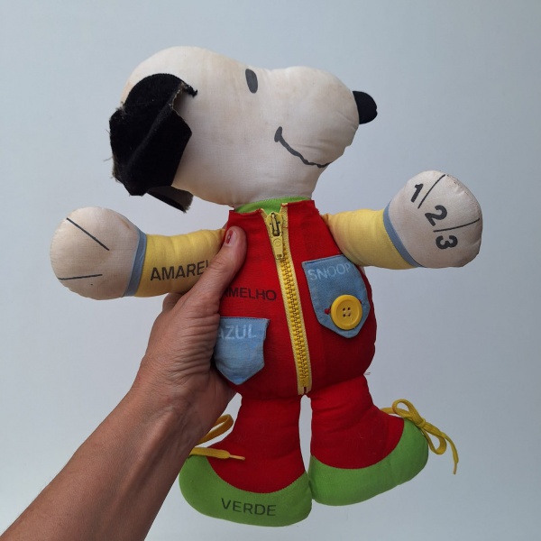 • Boneco de pano educativo do SNOOPY, marca ESTRELA, década de 80. Peça no estado das fotos, sem testes de funcionamento.