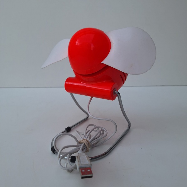• Mini Ventilador de mesa, portátil, de plástico com saída USB. Design moderno. Peça no estado das fotos, sem testes de funcionamento.
