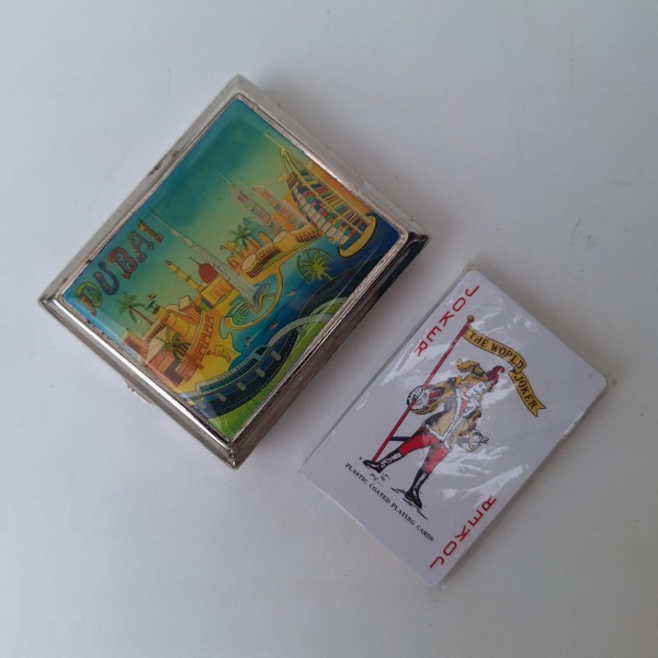 • Lindo estojo de metal, ilustração DUBAI e com baralho completo e sem uso, lacrado. Peça no estado das fotos.