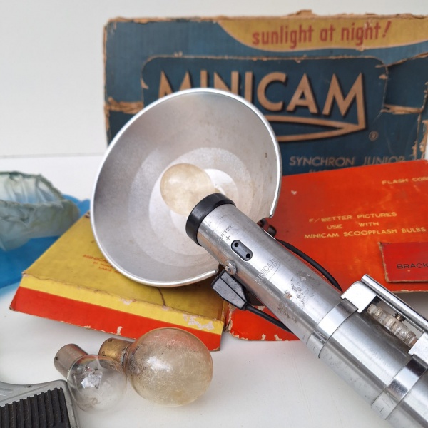 • Equipamento de FLASH para câmeras, MINICAM SYNCHRON JUNIOR. Caixa Original com acessórios. Peça no estado das fotos, sem testes de funcionamento.