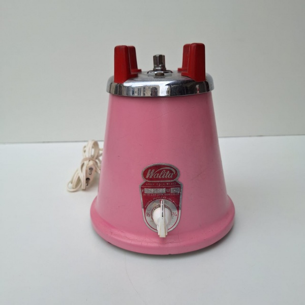• Liquidificador WALITA, Década de 50 , Revitalizado na cor rosa, não acompanha copo. Peça no estado da foto, sem testes de funcionamento.