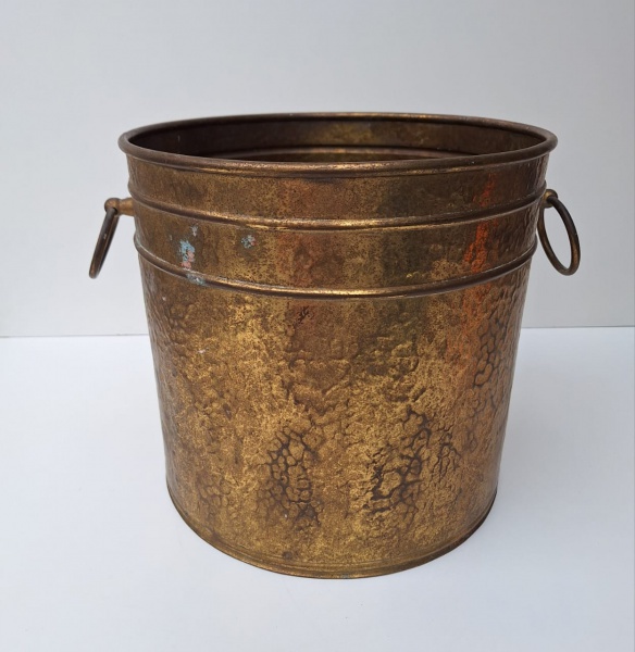 • Robusto CACHEPOT de latão martelado da década de 70 com alças de argolas. Peça no estado da foto, sem testes de funcionamento.