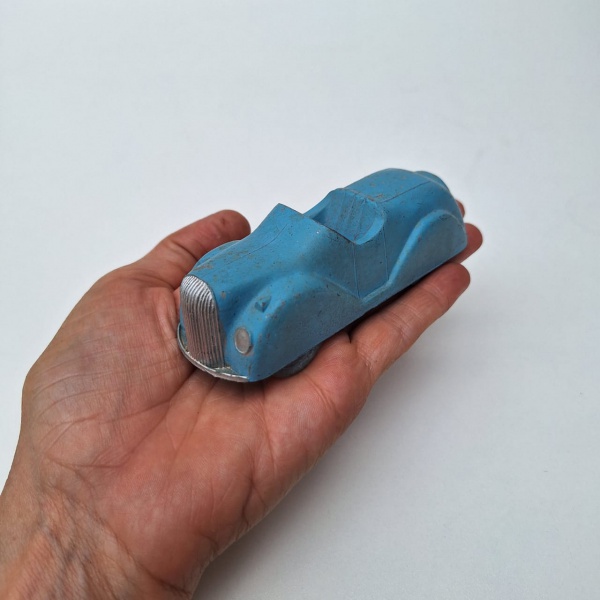 • ANTIGO CARRINHO MINIATURA DE METAL FUNDIDO EM ÚNICA PEÇA CONVERSIVEL AZUL COM 13,0 CM FABRICADO NA INGLATERRA NA DÉCADA DE 1940 SEM MARCA APARENTE